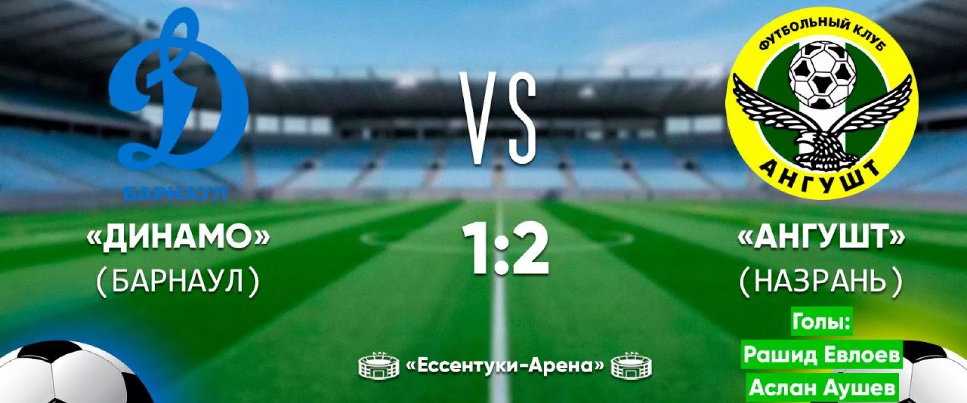 Футбольный клуб «Ангушт» (Назрань) обыграл барнаульское «Динамо» со счетом 2:1 в товарищеском матче на стадионе в Ессентуках.