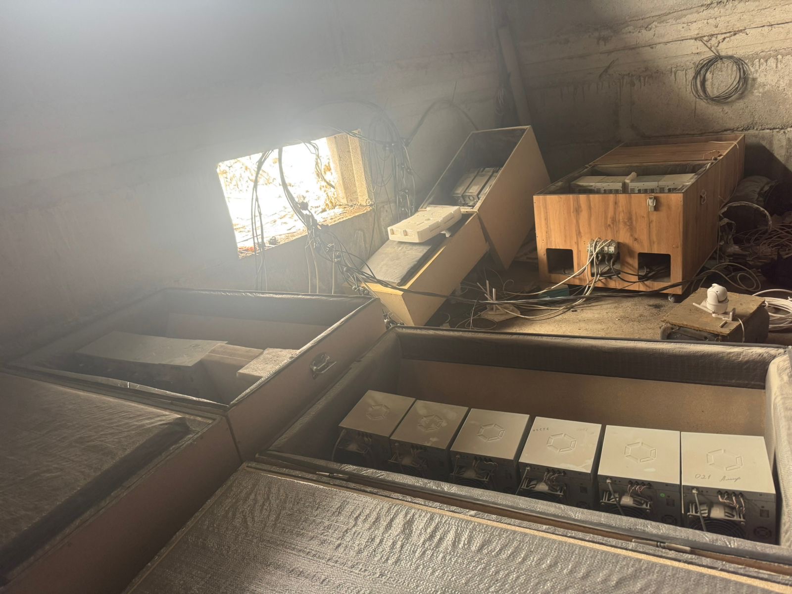 В ходе рейда специалисты обнаружили, что от ближайшей подстанции были проложены кабели напряжением 0,4 кВ общей длиной более 350 метров. В ангаре для сушки зерна находилось оборудование для добычи цифровых активов.