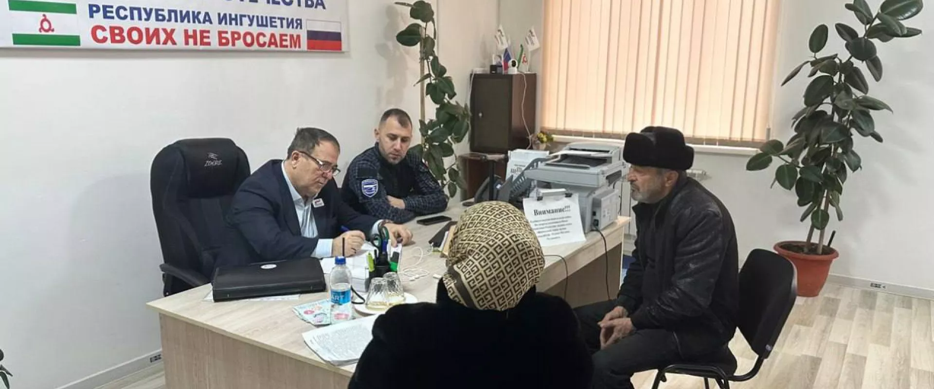 В Ингушетии состоялся прием граждан из числа ветеранов и родственников участников специальной военной операции. Мероприятие провели социальный координатор Хамид Кодзоев и председатель местного отделения «Офицеров России» Руслан Галаев.