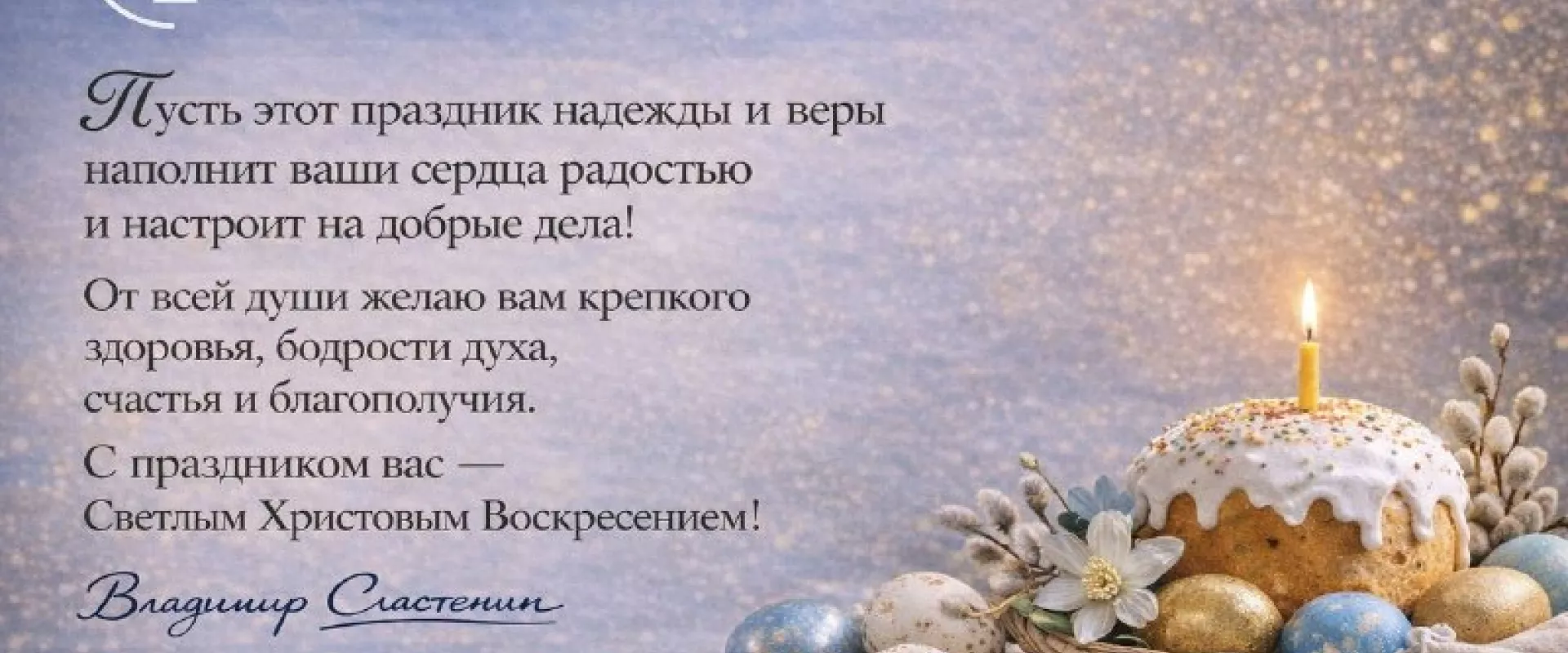 Владимир Сластенин пожелал православным, чтобы праздник принес в их дома радость. Он также пожелал, чтобы этот день настроил всех на добрые свершения.