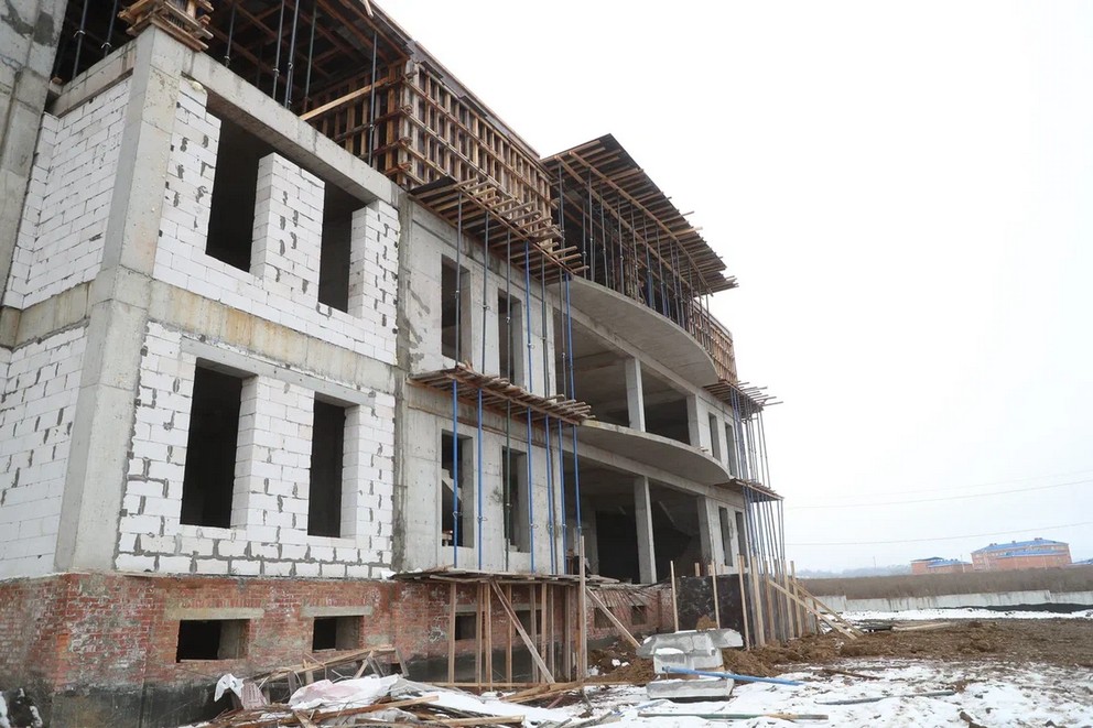 Глава Ингушетии Махмуд-Али Калиматов проверил ход строительства новой филармонии в Магасе. Рабочий осмотр объекта прошёл в соответствии с графиком.