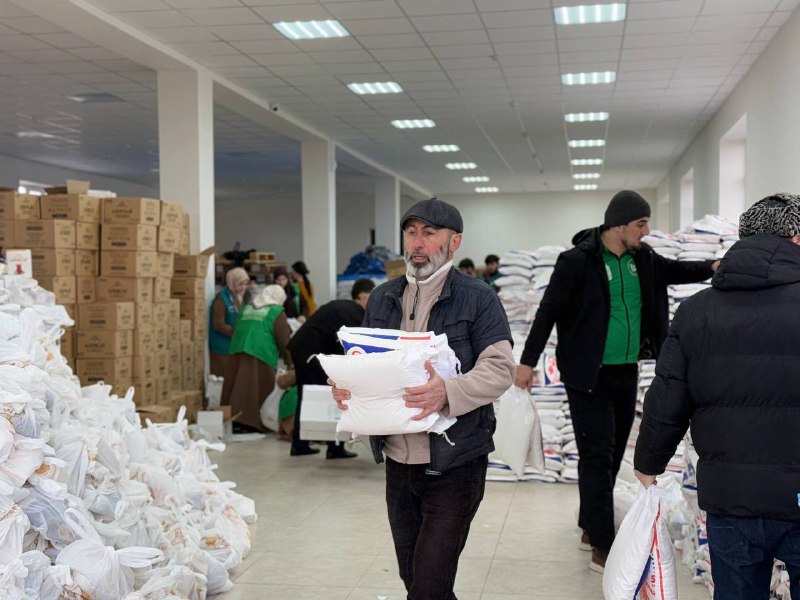 В первый день помощь направляется в Магас, Назрань и населенные пункты Пригородного района. Часть продуктовых наборов уже передана общественным организациям для адресной доставки.