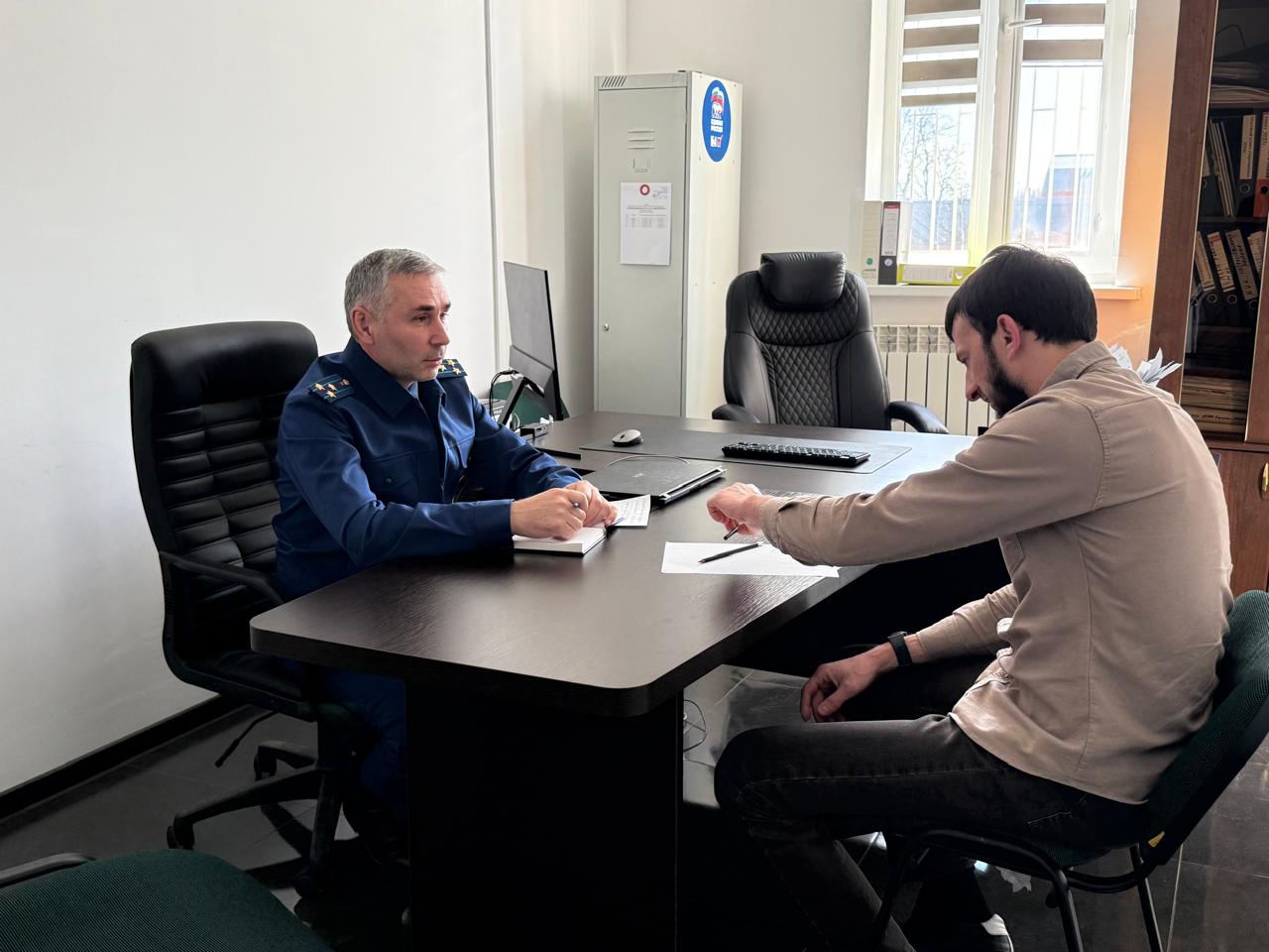 Параллельно выездной прием состоялся в администрации Назрановского района. Вопросы жителей, касающиеся социальной поддержки семей участников СВО, выслушал прокурор муниципалитета Руслан Аушев.