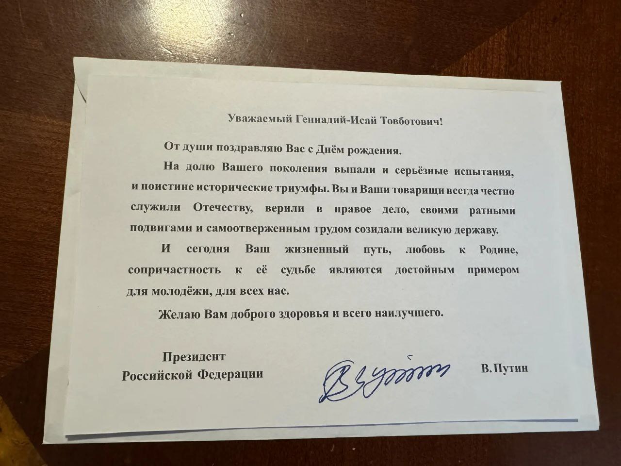 Геннадий-Исай Товботович Куштов выразил сердечную благодарность за заботу и внимание к себе.