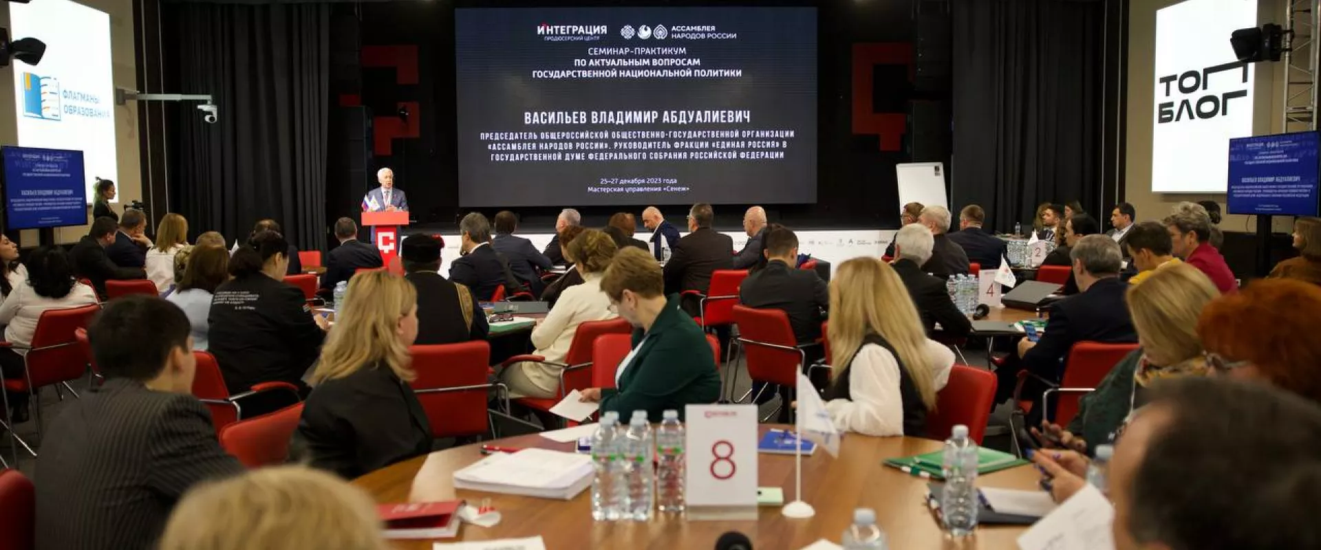 Открыл Всероссийский семинар-практикум Председатель «Ассамблеи народов России», руководитель фракции политической партии «ЕДИНАЯ РОССИЯ» в Государственной Думе Федерального Собрания Владимир Васильев.