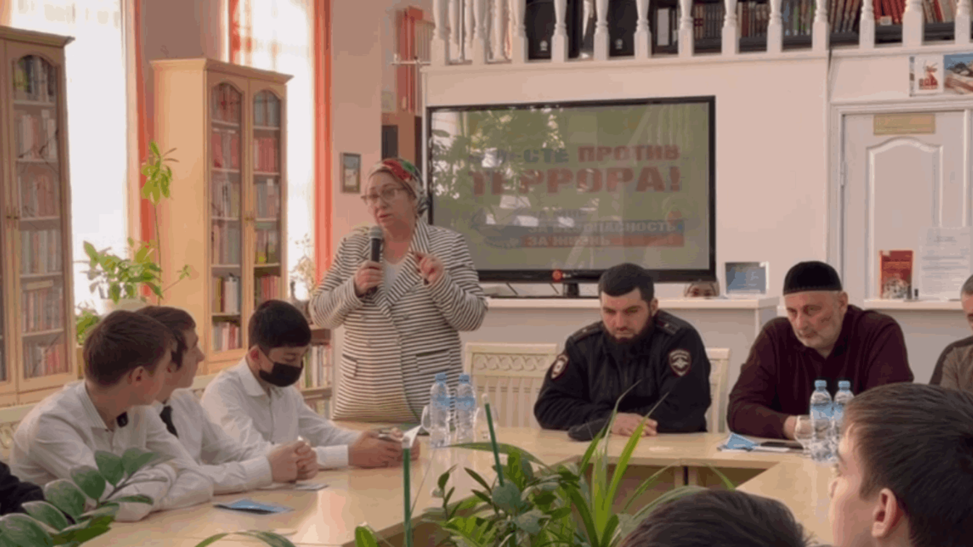 В Национальной библиотеке им. Джемалдина Яндиева в Сунже прошло собрание школьников по борьбе с террористическими проявлениями с участием сотрудников МВД, юристов и секретаря антитеррористической комиссии.