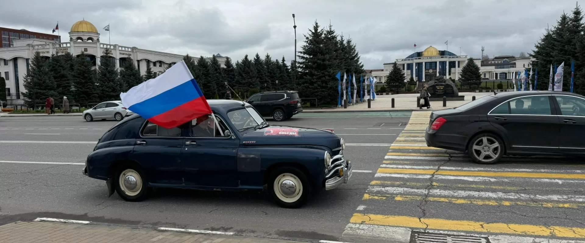 Отмечается, что автоколонна двигалась под государственными и национальными флагами, а также партийной символикой. Особое внимание привлекли ретро-автомобили — легендарные «Победа» и «Волга», которые придали мероприятию особую атмосферу памяти и уважения к истории.