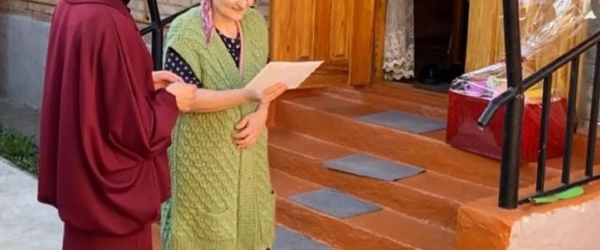 Гости передали долгожительнице Айшет Асламбековне персональное письмо от президента России Владимира Путина и подарочную корзину со сладостями. Визит состоялся в честь её юбилея.
