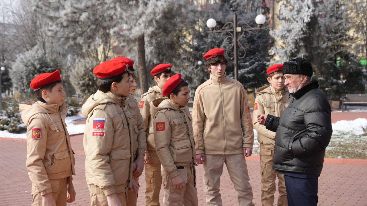 Учащиеся первой гимназии Малгобека провели церемонию возложения цветов к Вечному огню и памятникам в рамках акции «Верни герою имя».